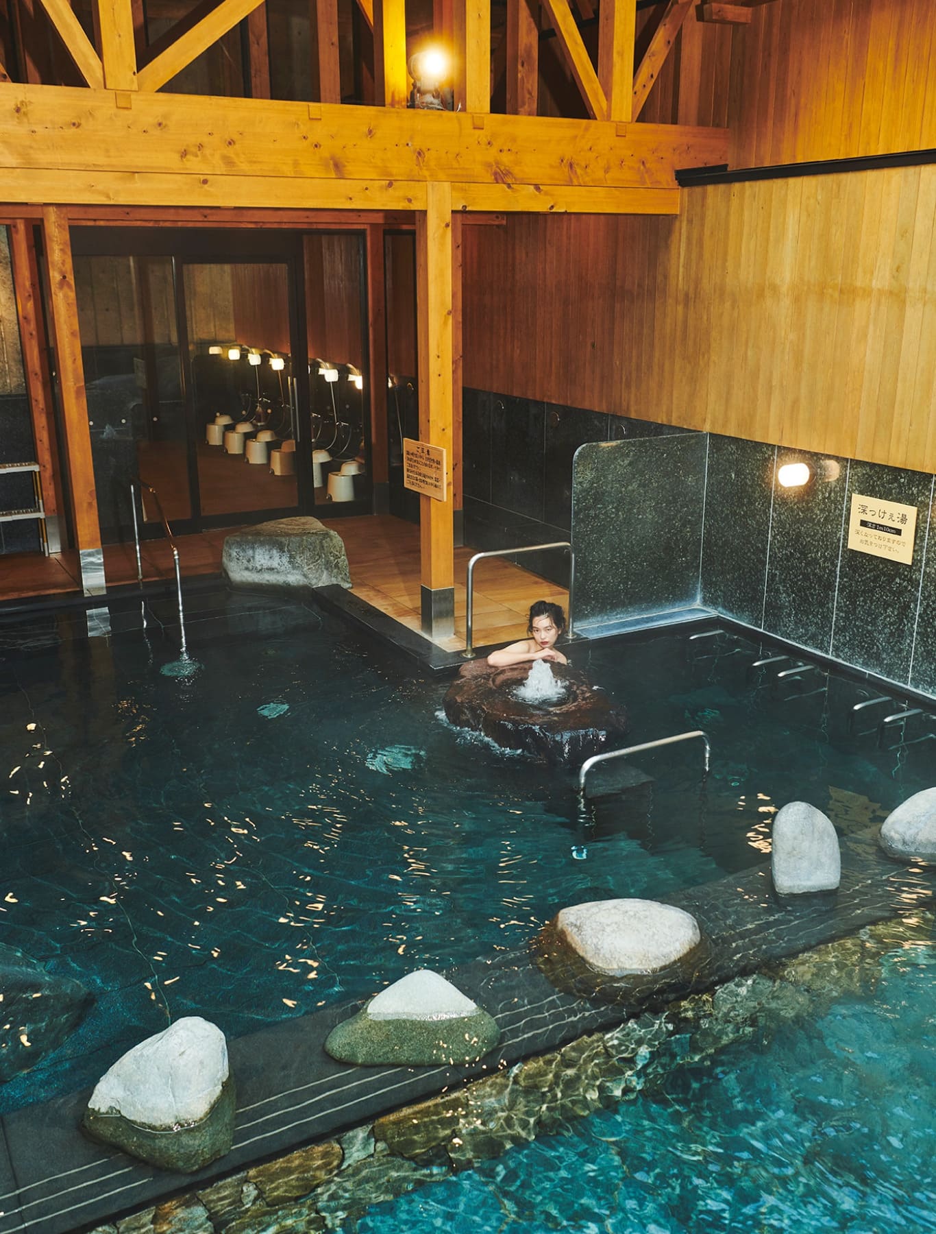During the Edo period, many villagers were taking a bath, so it was called “Satobito no Sotoyu”. It is said that the name “Jizou-yu” came from the source of this hot spring. The old-fashioned building that Jizou watches over is impressive. On the 2nd floor, there is a family bath and a large rest area with tatami mats, and there is a space for children with a shallow bathtub and a warm temperature, so the family can take a bath with peace of mind.