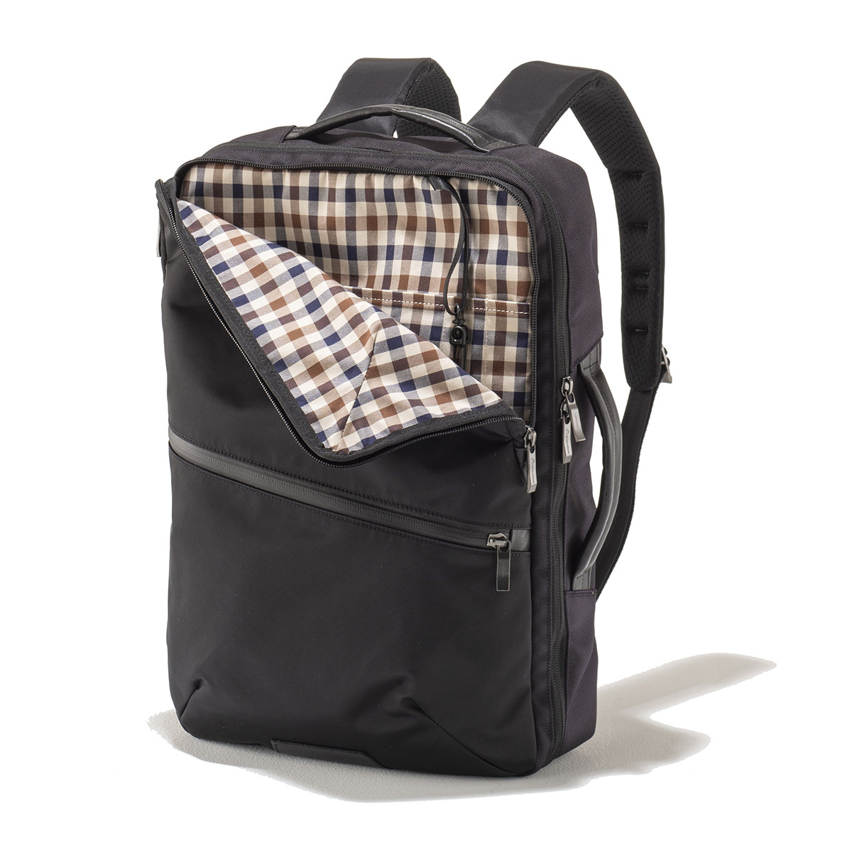 2WAYでの使用が可能なバックパック。本体素材には、耐久性、防水性に優れたmaster-pieceオリジナルファブリック「MASTERTEX」を使用。裏地にはAquascutumを象徴する伝統的な綿100%のクラブチェック柄を使用。