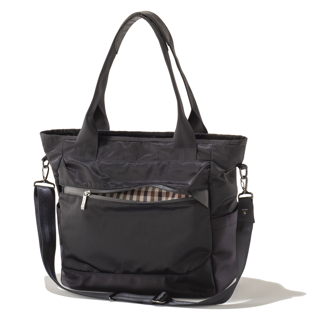 2WAYでの使用が可能なトートバッグ。本体素材には、耐久性、防水性に優れたmaster-pieceオリジナルファブリック「MASTERTEX」を使用。裏地にはAquascutumを象徴する伝統的な綿100%のクラブチェック柄を使用。