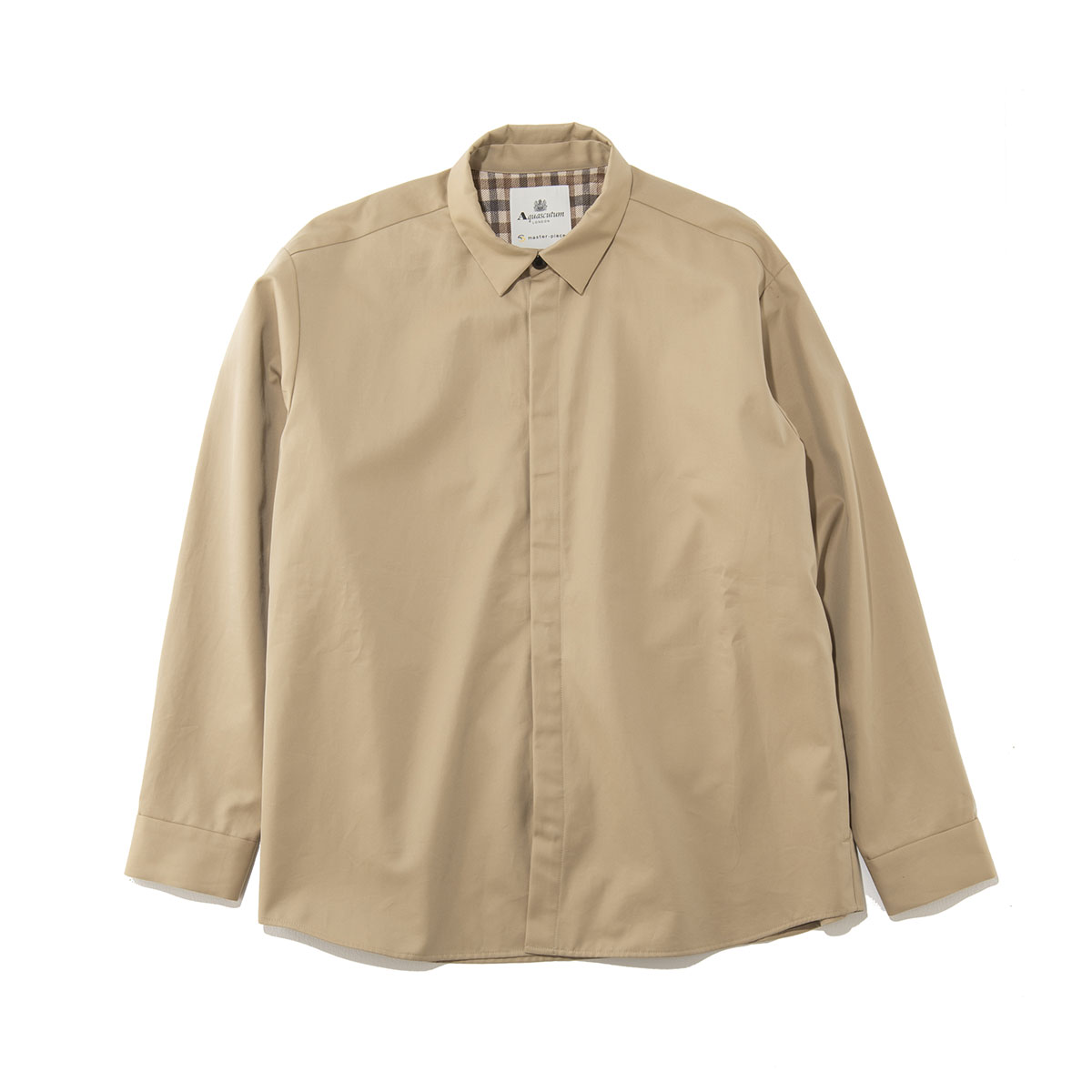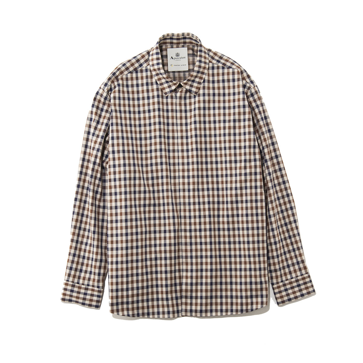 サイドにポケットを設け、アウターとしても着用できるチェックシャツ。本体素材にはAquascutumを象徴する伝統的な綿100%のクラブチェック柄を使用し、裏地には吸湿速乾性に優れたクールマックスメッシュを使用。肩甲骨と腰骨の間にベンチレーションを配置する事で、バックパック着用時の通気性を確保しています。
