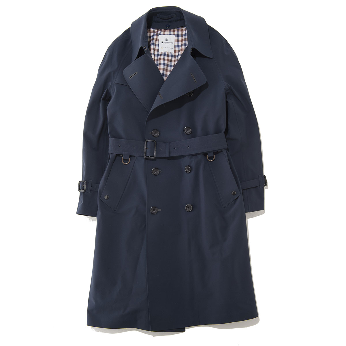 1930年に発表され、90年経った今もなお愛し続けられている、アクアスキュータムのアイコントレンチコートKINGSWAY。Aquascutumのアイコンであるクラブチェックカラーに使用されるBROWNとNAVYの2カラー展開。バックパック着用時にショルダーハーネスが干渉しない様にエポーレットを排除し、全ての縫い目にシームシーリングを張る仕様で雨風の侵入を防ぎ、溶着による縫製でステッチを省き軽量化も図りました。