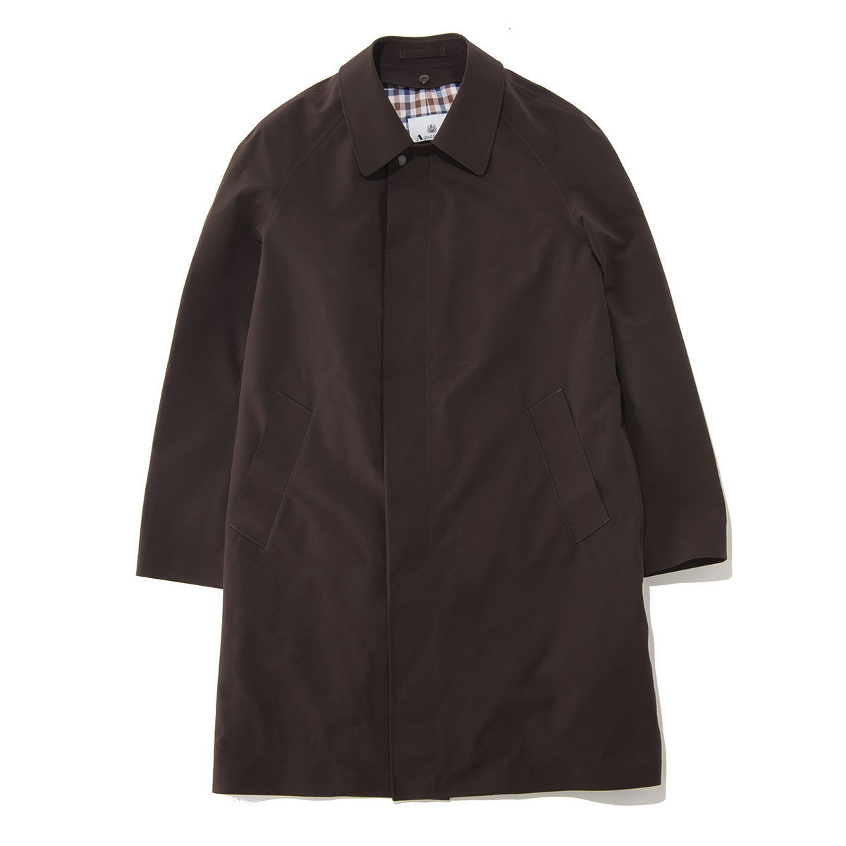 アクアスキュータムの定番バルマカーンコートROVER。Aquascutumのアイコンであるクラブチェックカラーに使用されるBROWNとNAVYの2カラー展開。全ての縫い目にシームシーリングを張る仕様で雨風の侵入を防ぎ、溶着による縫製でステッチを省き軽量化も図りました。