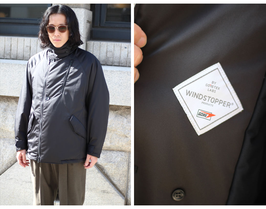Next is this piece. As the name suggests, it adopts WINDSTOPPER® material. Its greatest appeal is firmly blocking Kyoto’s “piercing winter wind” while remaining comfortable without stuffiness.