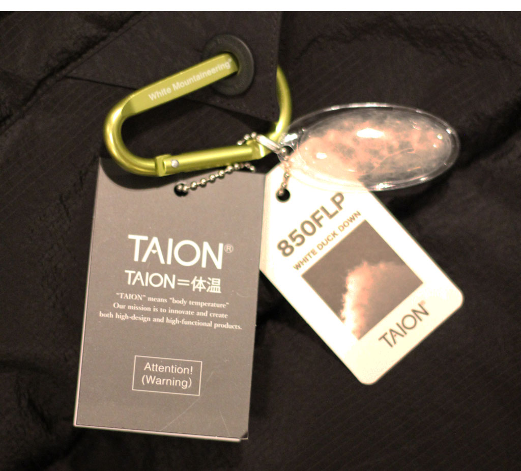 *“TAION” is a Japanese brand that makes high-performance inner down wear, with the brand name derived from the Japanese word for “体温(body temperature)“.