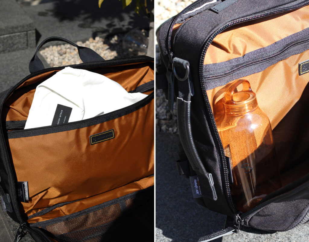 The main compartment is spacious enough to fit clothing, making it easy to pack a change of clothes for after work separately. It can securely store all your essentials such as a wallet, smartphone, and water bottle.