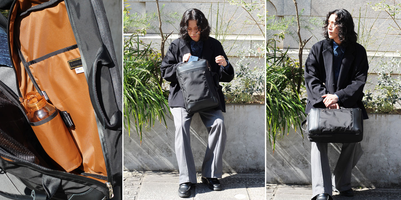 As the name suggests, the 3-WAY backpack offers three ways to carry — a backpack for easy movement on the go, a handheld bag for business meetings, and a shoulder bag when the situation calls for it — making it a versatile companion that adapts to any scene.