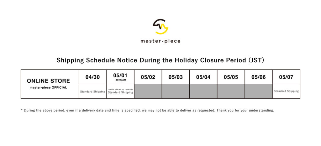 Due to our Golden Week holiday closure, we will be adjusting our shipping schedule as follows: