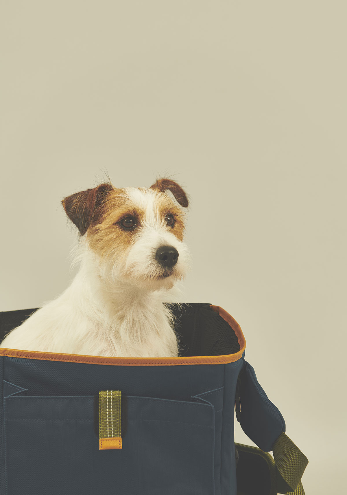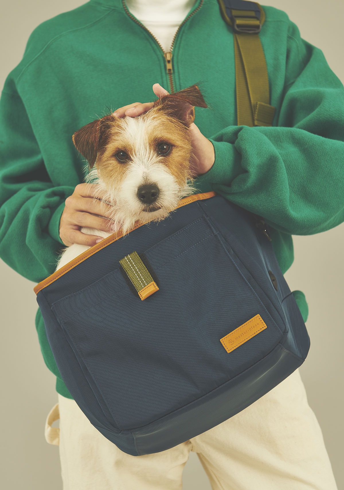 体重7kg以下程度の小型動物を対象とした前持ち、背面持ち両方に対応するワンショルダー型のキャリーバッグ。トップとサイドに 1 箇所ずつ設けたメッシュウィンドウで 移動時にも愛犬の様子を確認することができます。